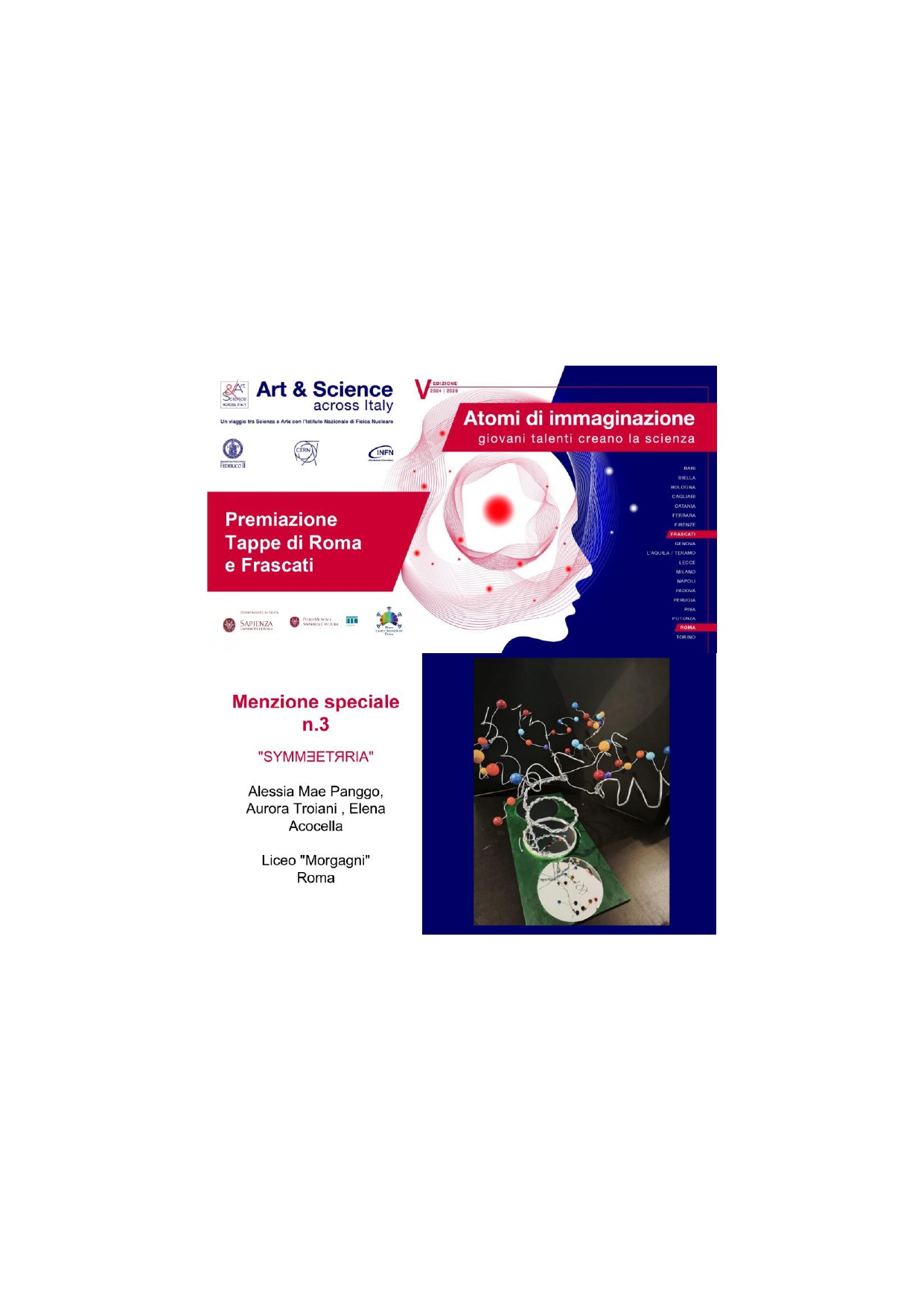 L’esposizione nella capitale è stata organizzata dalla INFN Sezione di Roma, in collaborazione con la Sapienza, il Polo Museale e il Piano Lauree Scientifiche in Fisica, confermando ancora una volta il valore di un’iniziativa capace di unire creatività e rigore scientifico.