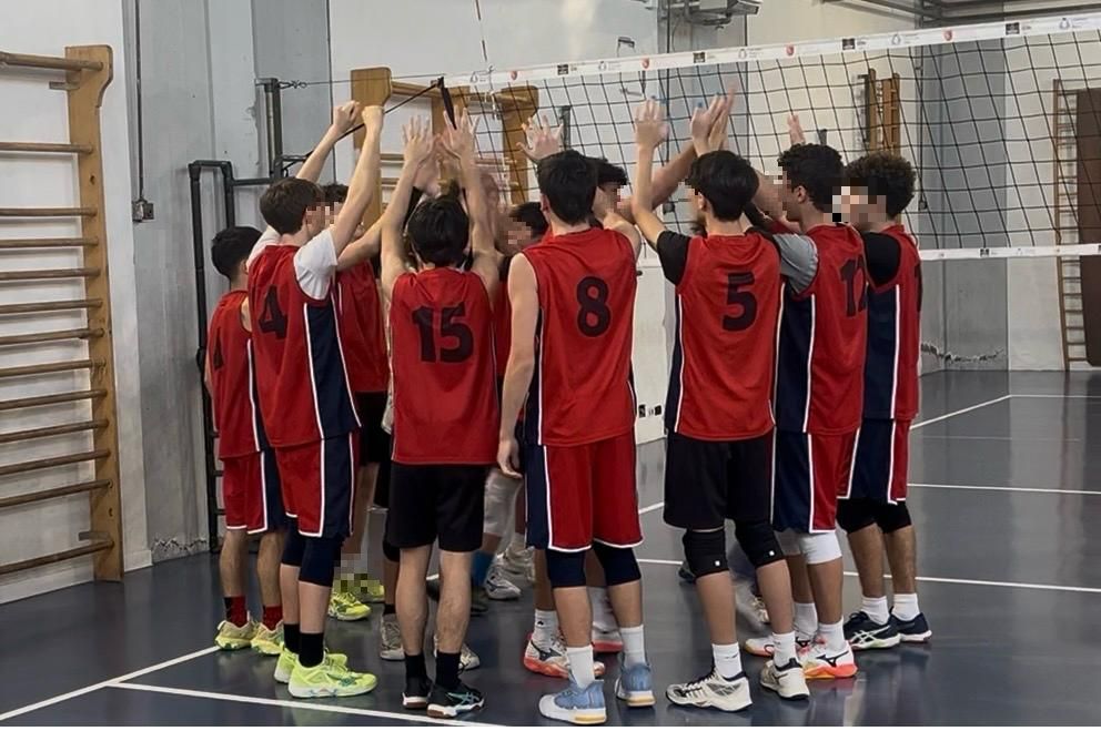 Gli studenti della squadra di pallavolo hanno vinto oggi contro la squadra del Federico Caffè per 3 a 0.