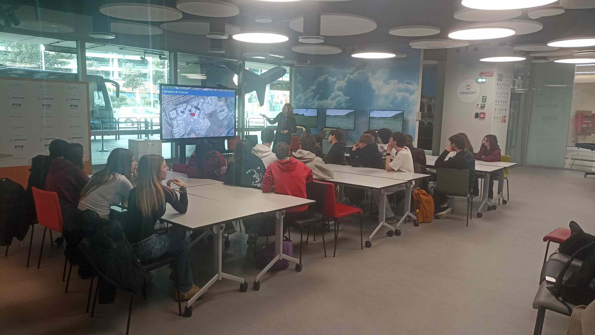 In occasione della Giornata Mondiale dell'Ingegneria per lo Sviluppo Sostenibile, la classe 2F si è recata presso il Laboratorio Newton Rome dell'Aeroporto di Fiumicino, (un'aula multimediale ad alto contenuto tecnologico dedicata all'orientamento STEM), per partecipare ad un laboratorio didattico sulla simulazione di volo.